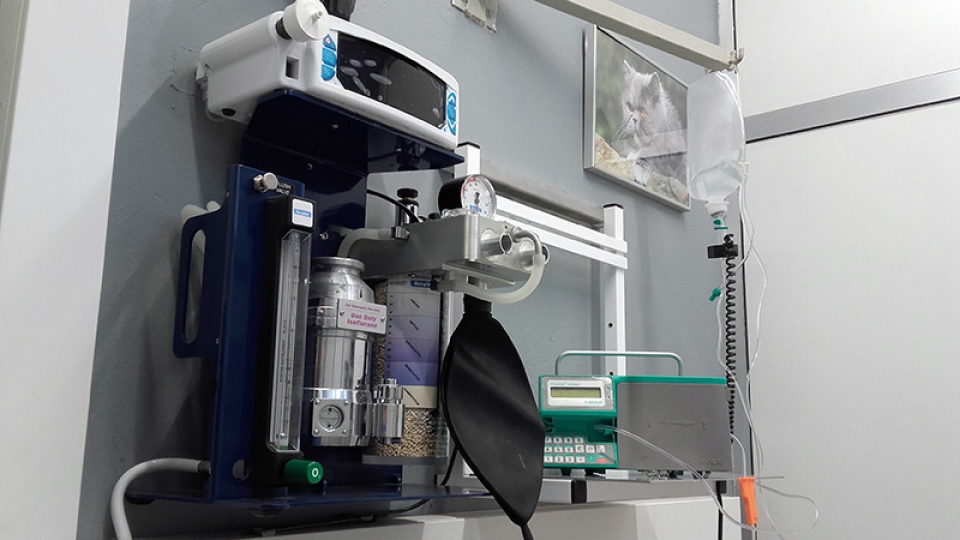 Tenemos un quirófano equipado con anestesia inhalatoria y monitorización de constantes vitales: